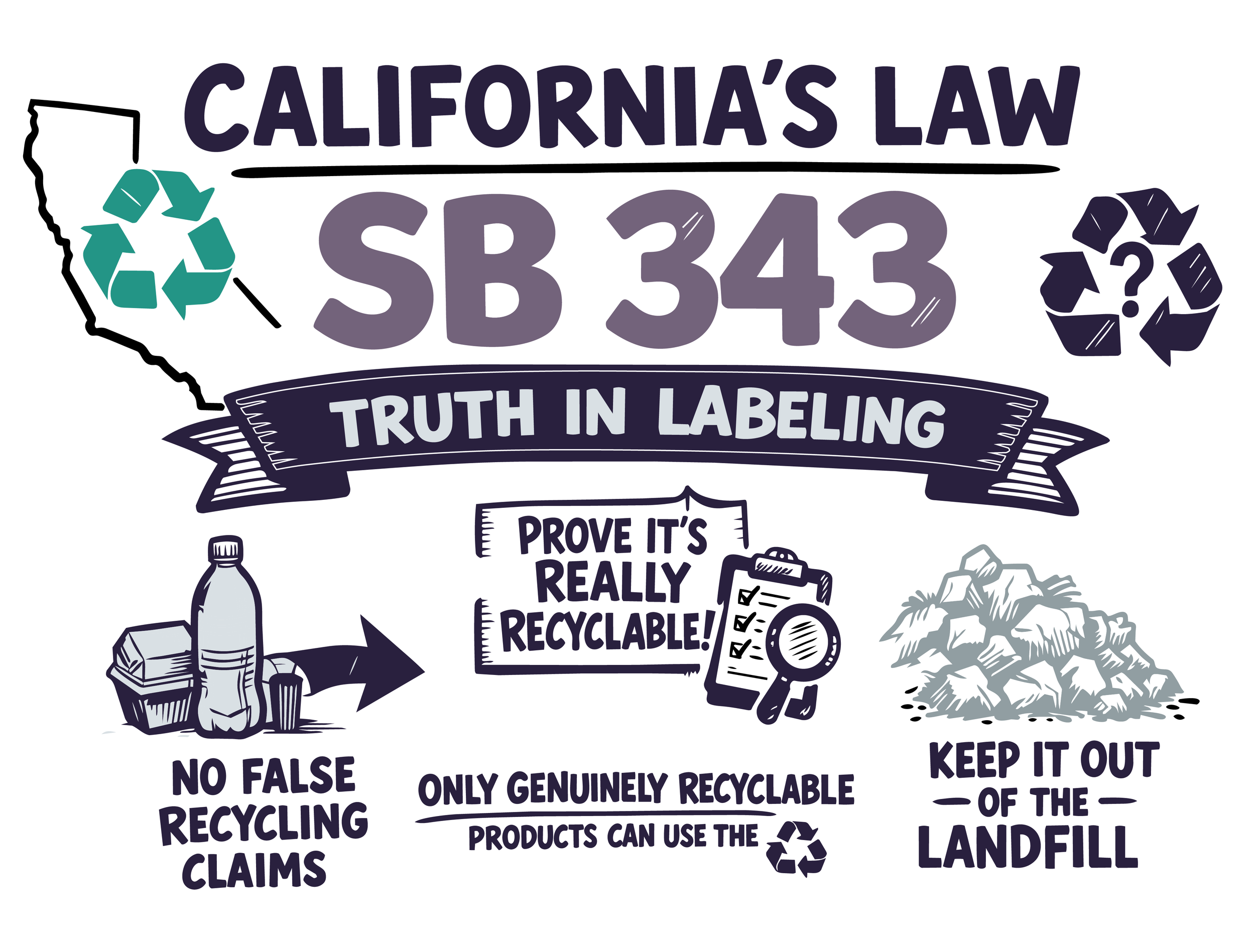 Let’s start with good old California! For decades, the "chasing arrows" symbol was the universal shorthand for "eco-friendly." That shorthand is now a legal liability. On March 17, 2026, a coalition of 18 food industry groups and trade associations filed a significant legal injunction in federal court against California’s SB 343. This law strictly prohibits the use of recyclability symbols on packaging manufactured after October 2026 unless the material meets stringent recovery metrics; specifically, being accepted by facilities serving at least 60% of the state's population [1, 2].